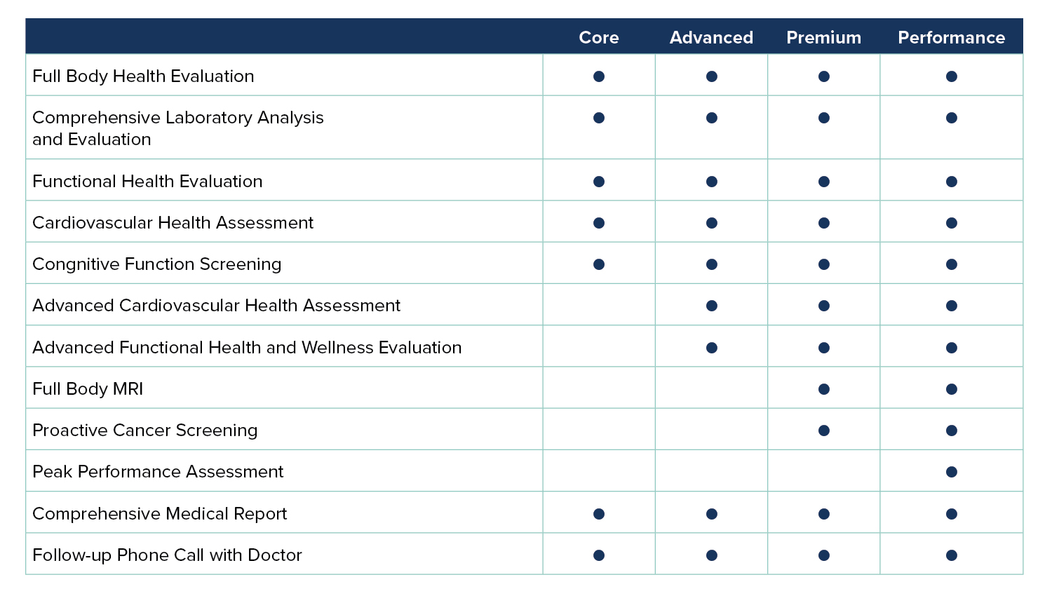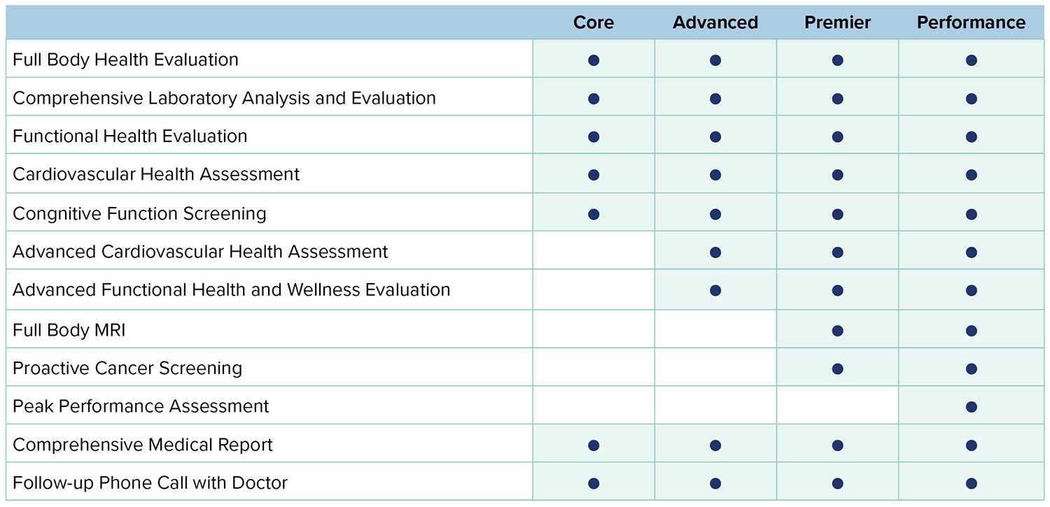 We offer four different Executive Health Packages that have been thoughtfully curated to support the aspects of your health that matter most to you.